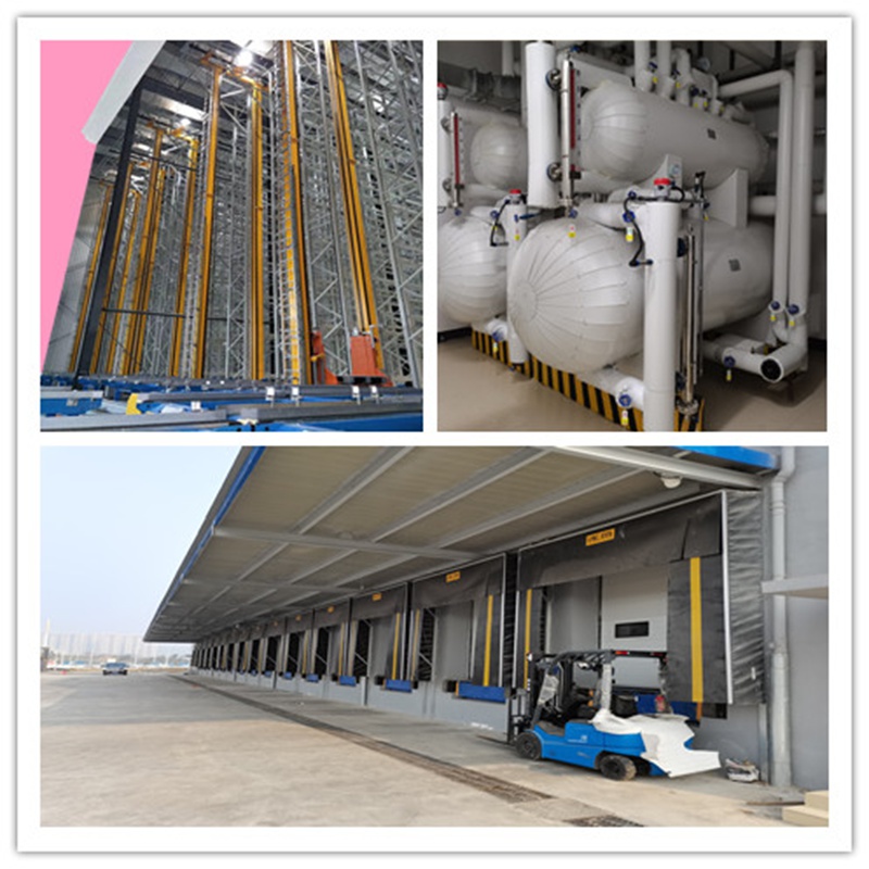 五、理貨區進入庫內的冷庫門采用雙門互鎖的工藝,完全杜絕庫內外的熱交換,更加節能,庫內蒸發器(頂排管技術)的化霜周期也更長(2年左右化一次霜),頻繁化霜不僅增加能耗,也導致庫溫波動很大,對儲存的高端產品和奶油制品也會造成不良影響。也可采用冷風機,建議把冷風機放在頂部結構的夾層,采用風道送風,這樣更利于后期設備檢修和設備的穩定運行